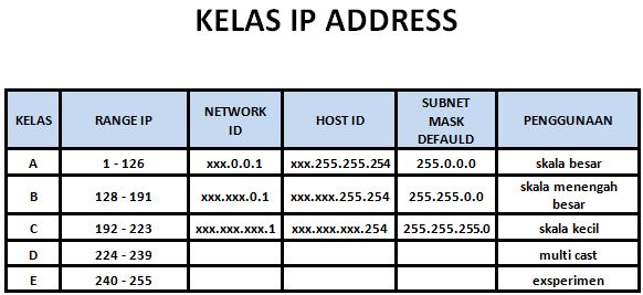 Tag : Pembagian Kelas pada IP Address dan Jenis Jenis IP Address, IP Address Kelas A , IP Address Kelas B, IP Address Kelas C, IP Address Kelas D, IP Address Kelas E.